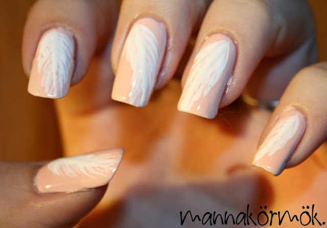 Alapnak a Jollie France 22-es lakkját használtam, amiről hamarosan hozok tesztet is, majd erre fehérrel libatollakat festettem.